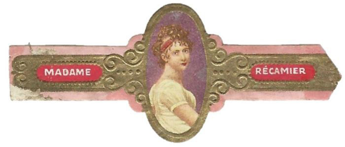Zijn merk Madame Récamier spant daarbij de kroon. De sigaar is genoemd naar Juliette Récamier (1777-1849), een invloedrijk courtisane aan het Franse hof in het begin van de negentiende eeuw. In haar salon in Parijs, dichtbij de regeringsgebouwen, ontvangt zij machtige politici. Juliette is een hele mooie vrouw. Een dichter schrijft: ‘Gij zijt zelf een gedicht, neen, gij zijt de dichtkunst zelve’. Haar romances spreken tot de verbeelding en inspireren onder meer de Franse schilder Jacques Louis David (1748-1825). Liggend op een sofa wordt Juliette een beroemd model. Goulmy versiert een van zijn sigaren met een afbeelding van Juliette Récamier. De sigaren zijn bovendien verpakt in een blikken doosje met daarop ook weer de bevallige dame op de sofa.